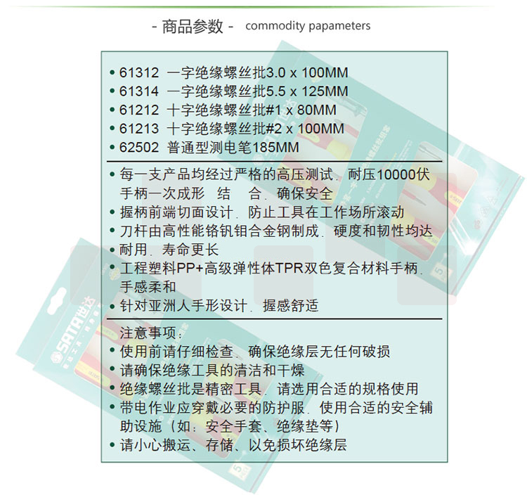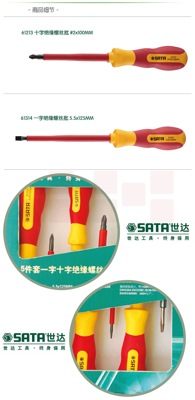 世达(SATA)5件VDE绝缘螺丝批组套货号09302
