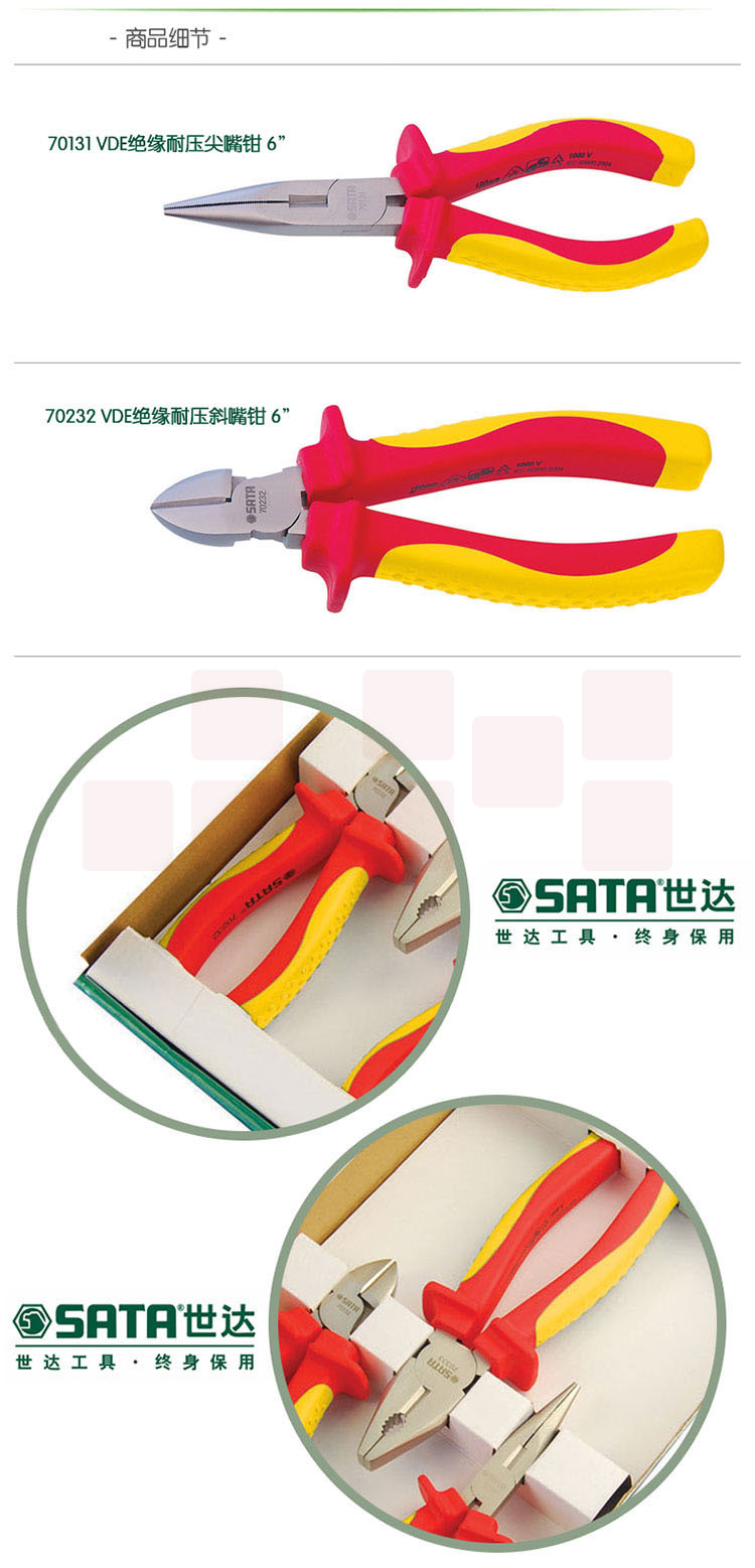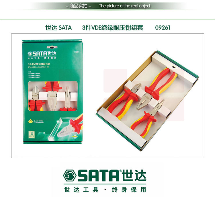 世达(SATA)3件VDE绝缘耐压钳组套货号09261