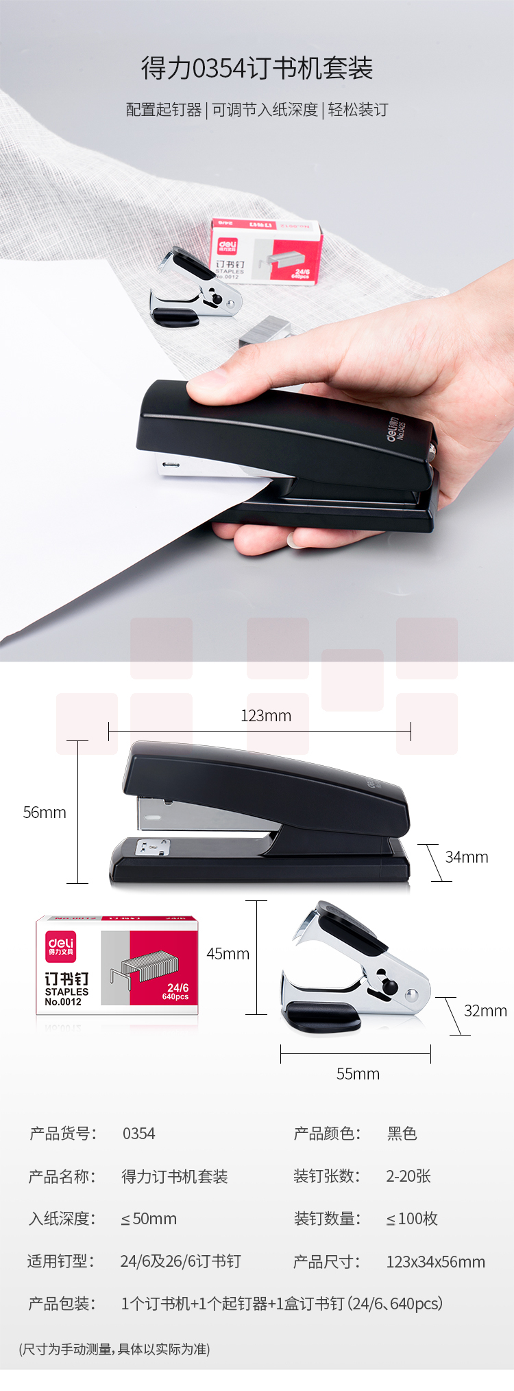 得力 订书机套装0354 订书机+起订器+书钉一盒型号:蓝色