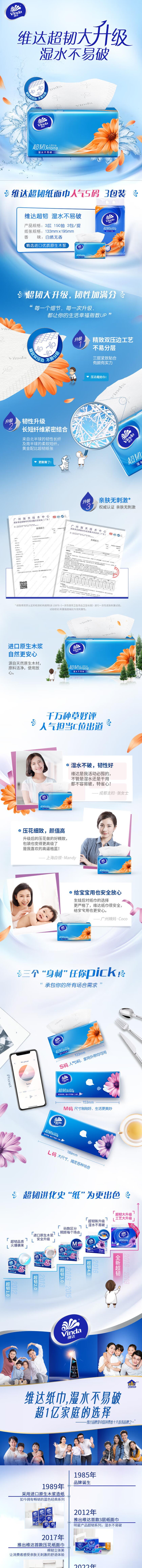 维达 抽纸 超韧3层 150抽软抽*3包 V2219
