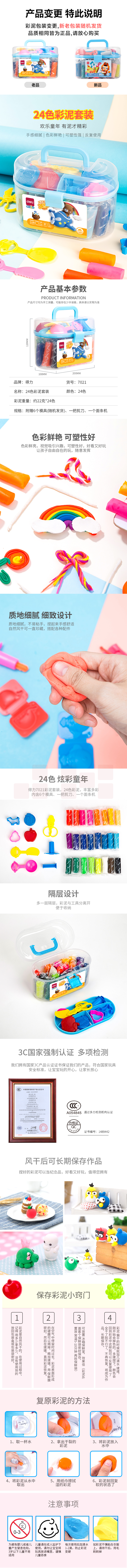 得力7021彩泥(24色)(蓝)