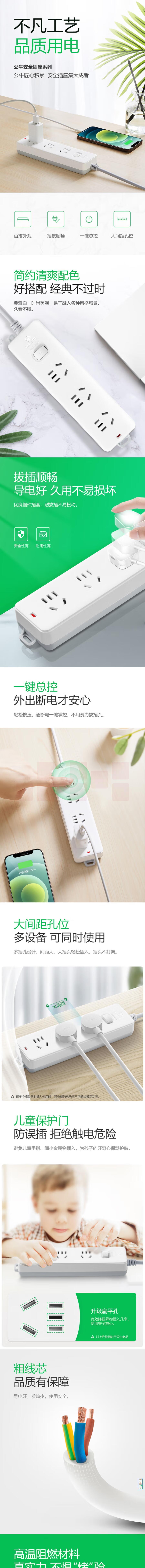 公牛GN-212 3位总控全长5米新国标插座/插线板/插排/排插/接线板/拖线板