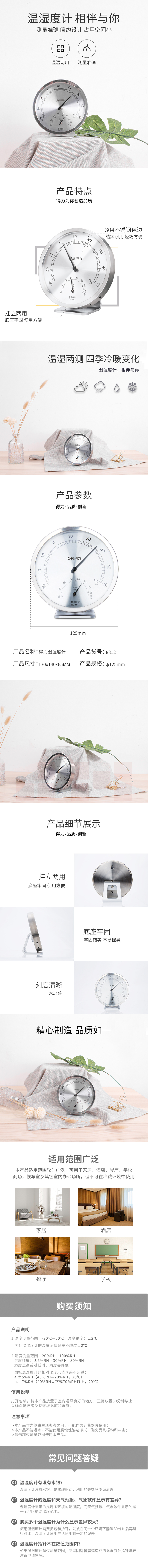 得力(deli)金属圆盘温湿度计 不锈钢大棚室内高精度免电池立挂两用 大号8812