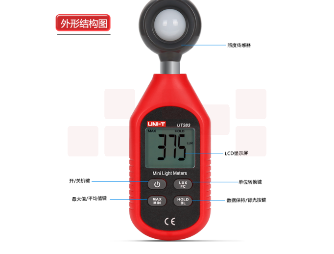 优利德 UT383 迷你型数字照度计 亮度计 手持式照度测试仪 测光仪