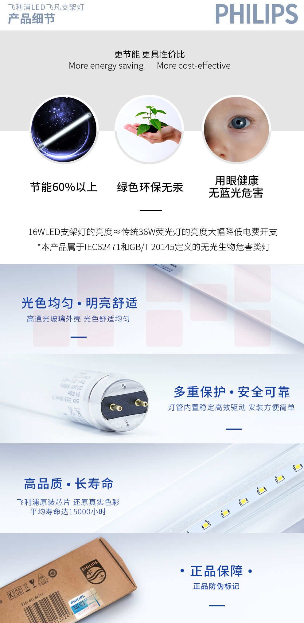 飞利浦(PHILIPS)LED灯管 白光 8W 长度0.6米