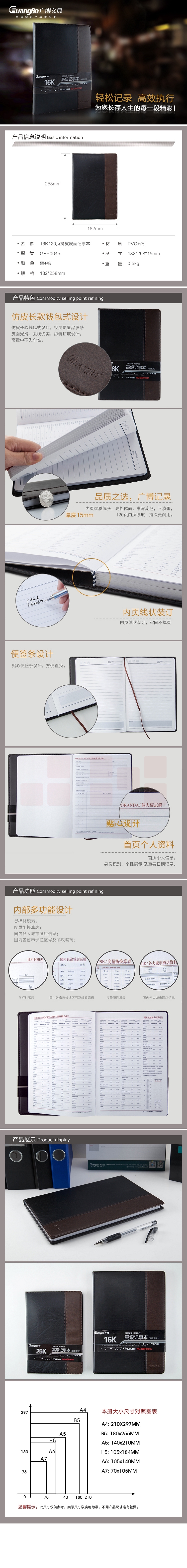 广博 16K120张拼皮皮面本 173*250*15mm (单位:本)棕黑 GBP0645