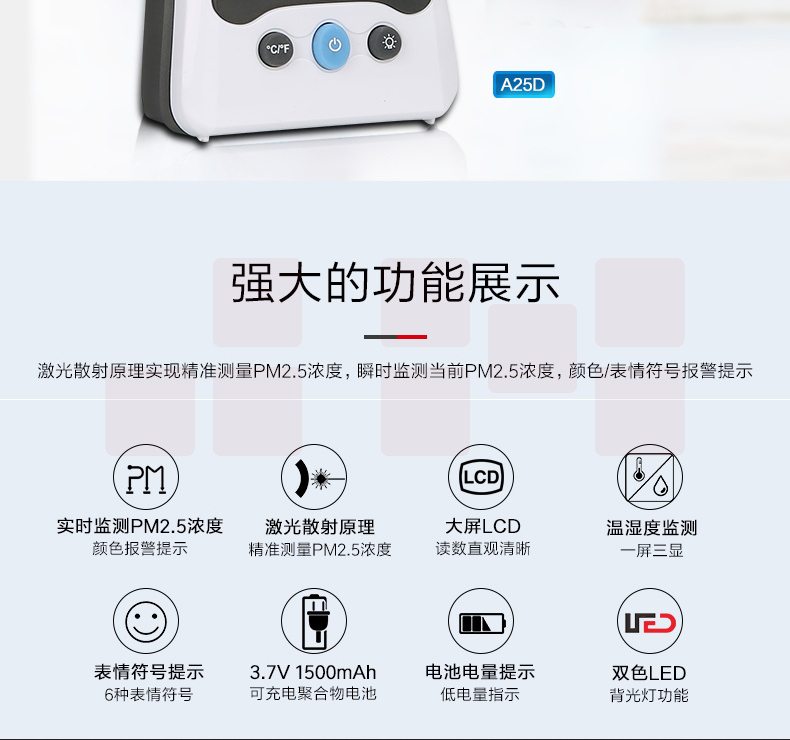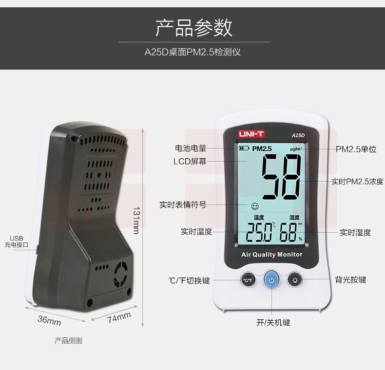 优利德 PM2.5检测仪 空气质量监测仪雾霾检测A25D