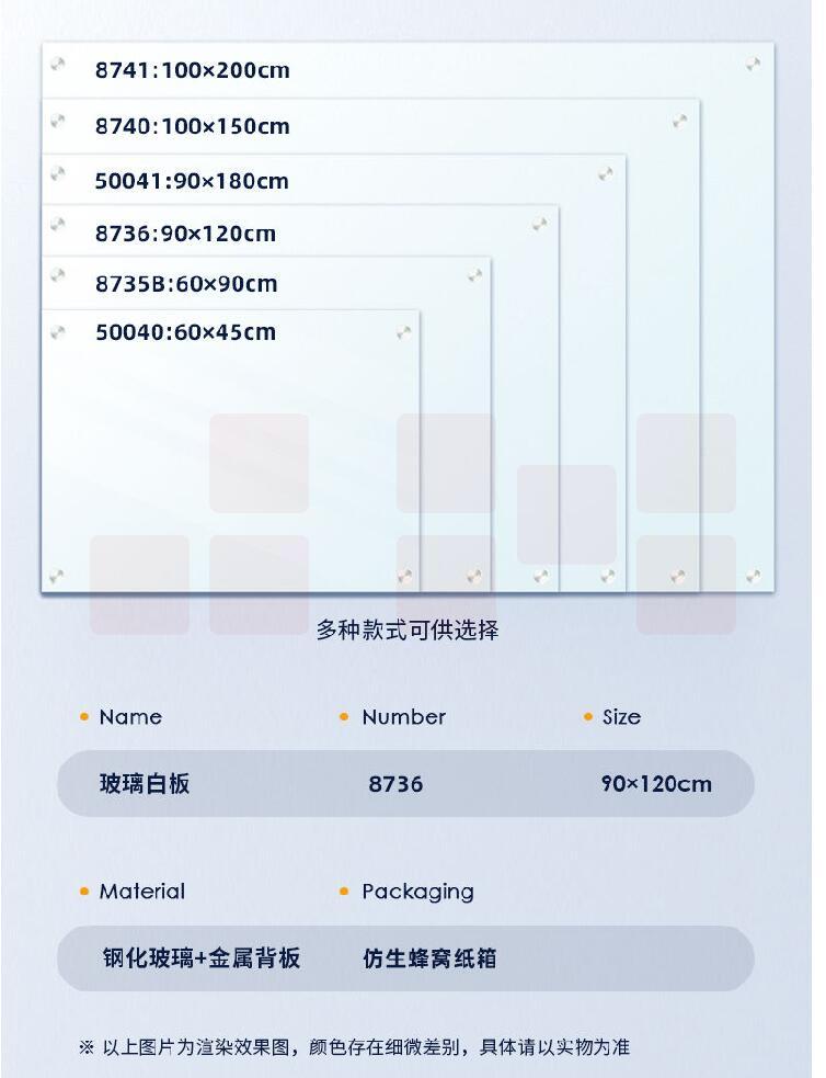 得力(deli)90*120cm挂式白板磁性钢化玻璃白板 抗划书写顺畅会议写字板黑板8736