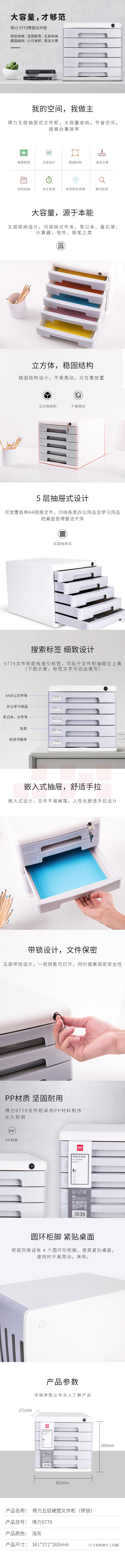 得力9779五层带锁文件收纳361*271*260mm(浅灰)