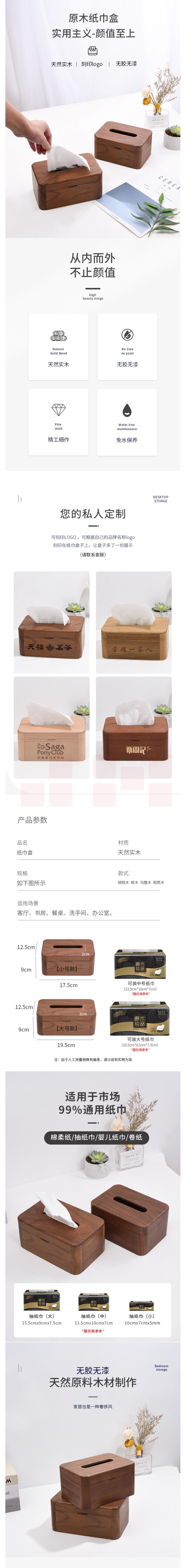 实木纸巾盒 抽纸盒 简约现代纸抽盒 大号 19.5*12.5*9cm 货号:LJ