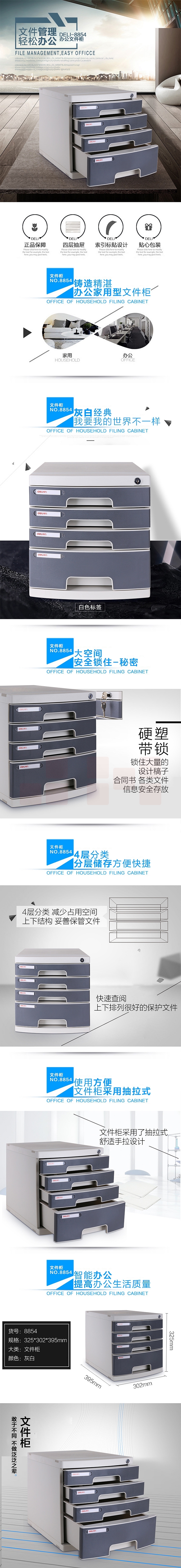 得力8854 四层桌面带锁文件收纳395x302x325mm (单位:只) 浅灰