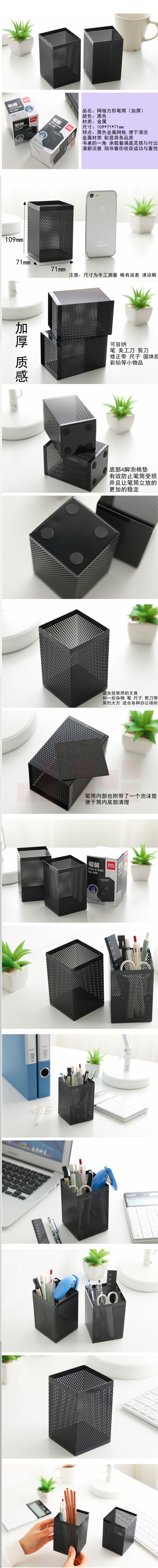 得力908笔筒 金属网纹方形笔筒 黑色方形笔筒71*71*109mm