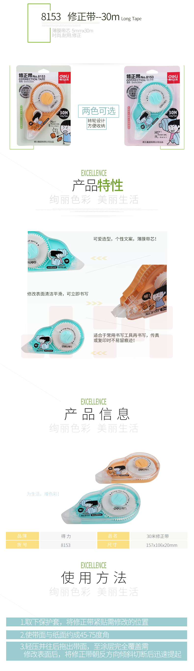 得力(deli)8153修正带30米带芯涂改带 改正带 (混)