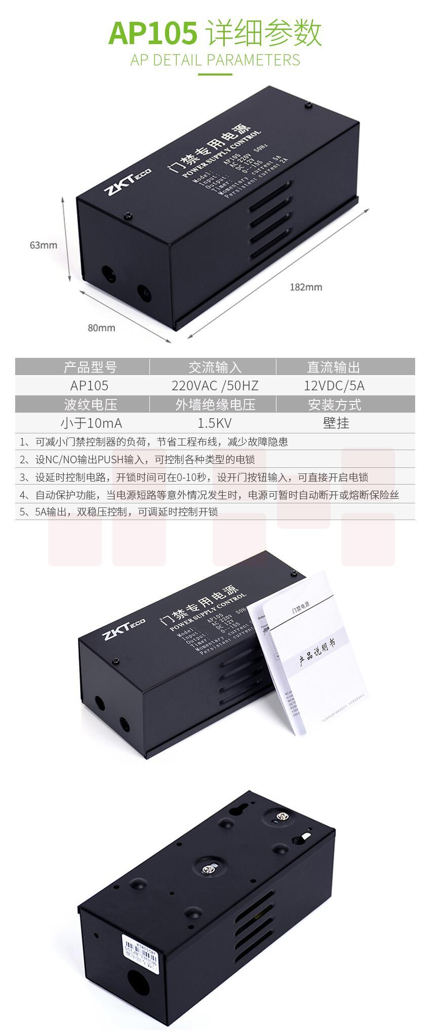 熵基科技 AP105 门禁电源12V/5A 通用性门禁专用电源 货号:JC
