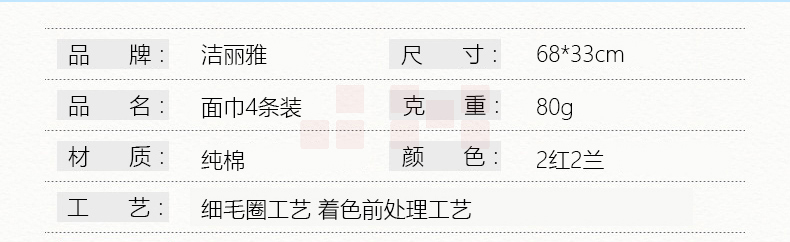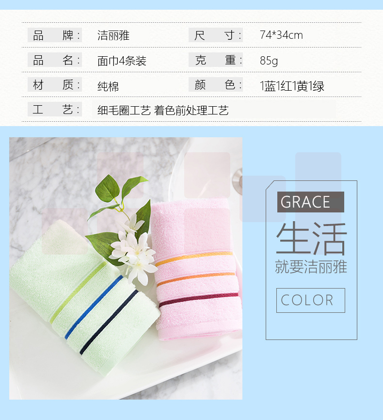 洁丽雅(Grace) E0033洁丽雅纯棉强吸水毛巾72*34cm