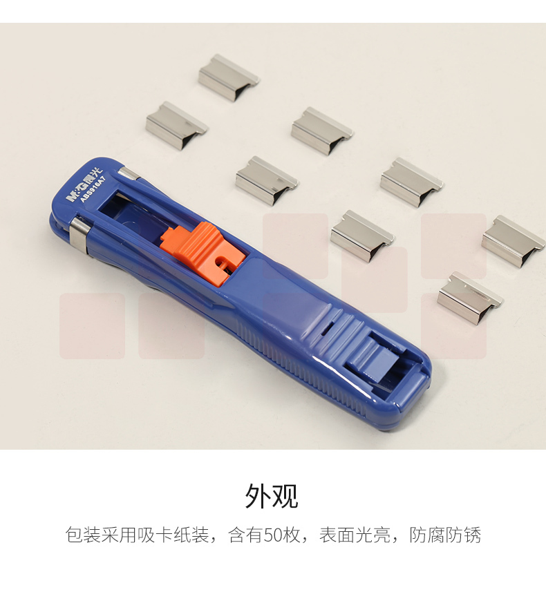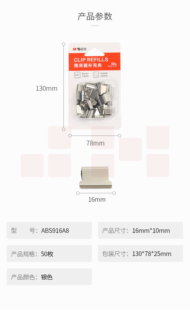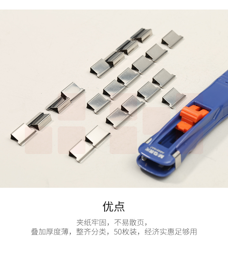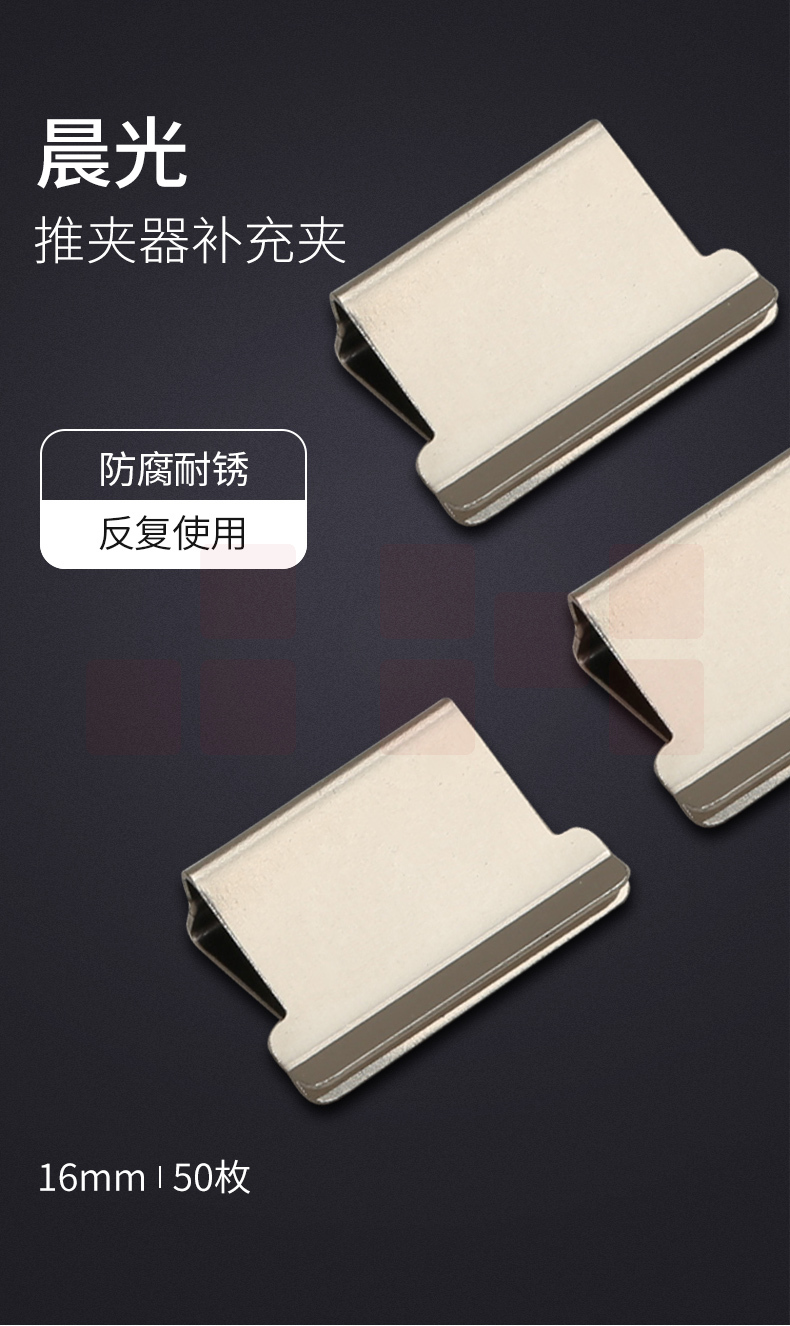 晨光 推夹器夹纸器补充金属夹子 50个/卡 ABS916A8(10卡/盒)