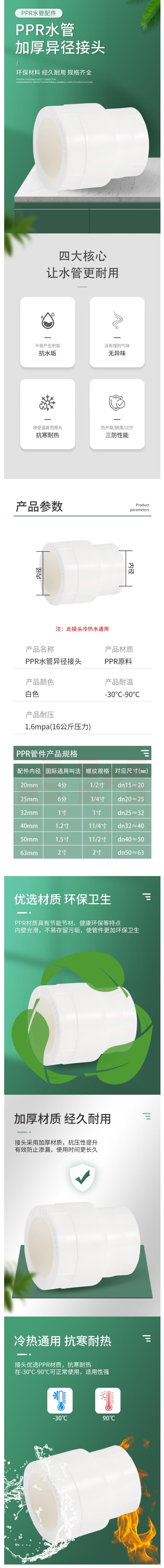 PPR异径直接 热熔管接头 异径活接 40*32 货号:HXE