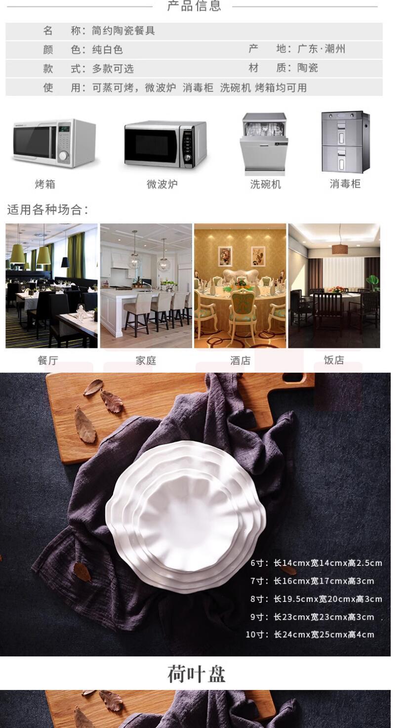 纯白陶瓷盘家用菜盘 6寸荷叶蝶 14*14*2.5cm 货号:LJ