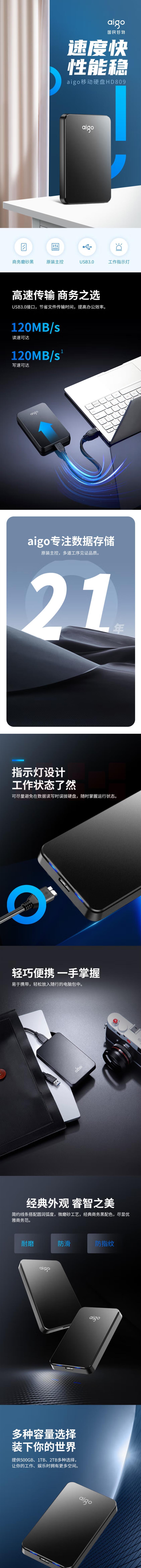 爱国者 2TB移动硬盘 HD809 USB3.0 移动硬盘 黑色 睿智之美 商务便携