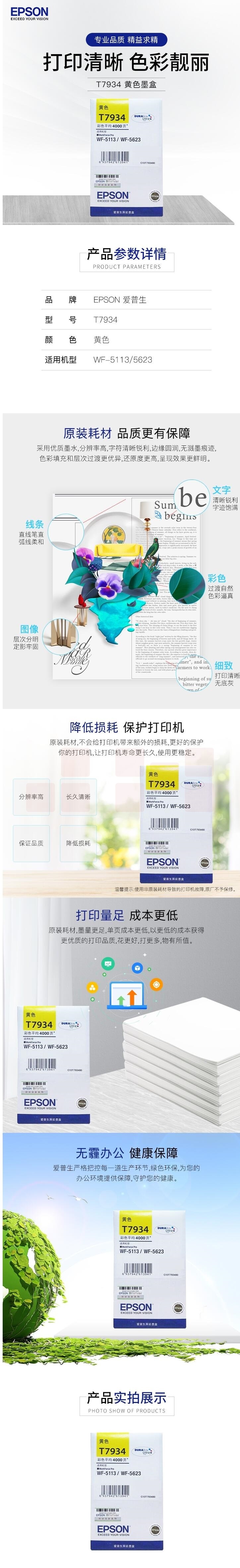 爱普生(EPSON)T7934 黄色墨盒 (适用WF-5113/5623机型)约4000页