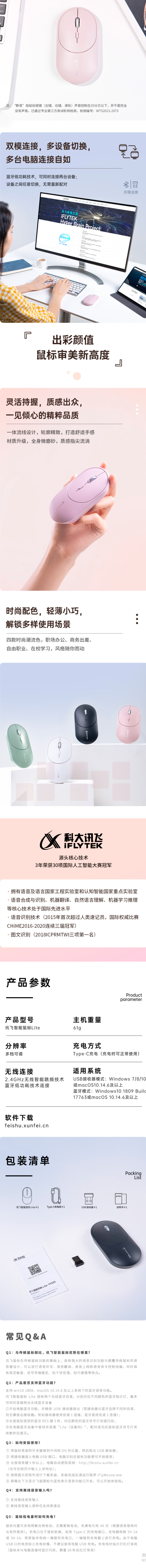 科大讯飞M320智能鼠标Lite 语音鼠标 充电鼠标 语音输入打字翻译 粉