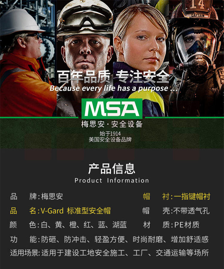 梅思安 V-Gard PE 标准型(红色) 安全帽10146458