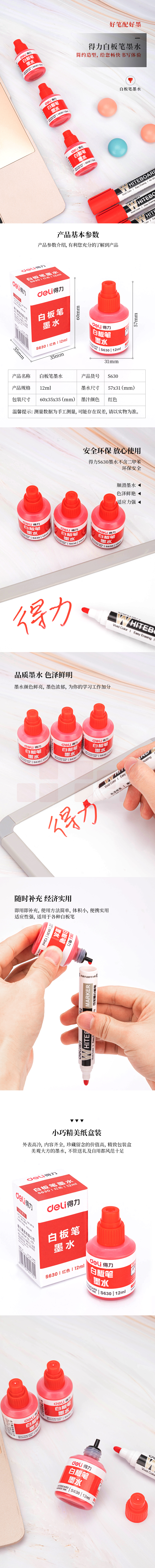 得力(deli)12ml可加墨白板笔墨水S502白板笔墨 红色 S630