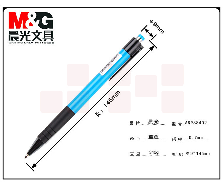 晨光 ABP88402 蓝色圆珠笔 0.7mm子弹头原子笔 便携中油笔 40支/盒