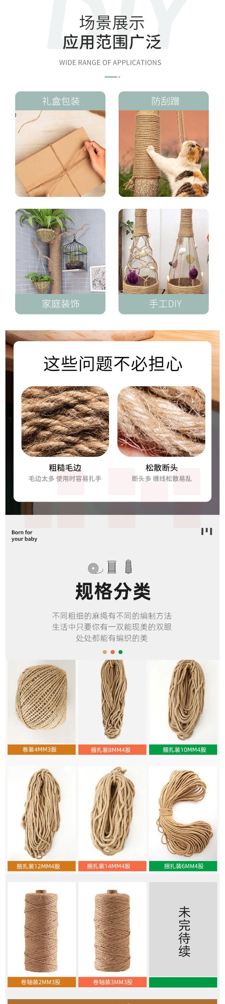 麻绳 麻线绳子 手工DIY材料绳 包装绳 2mm200米 货号:LJ