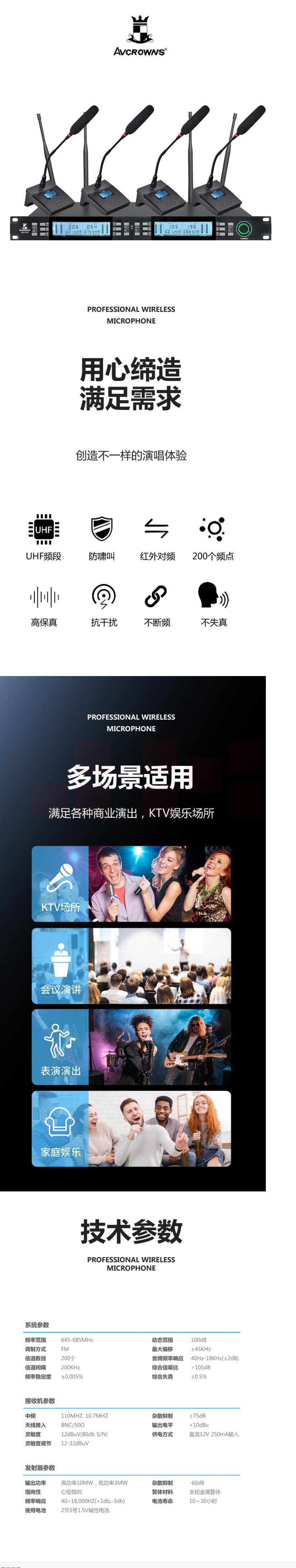 AVCROWNS 无线一拖四 会议主持演讲麦克风 AU-912 货号:LJ