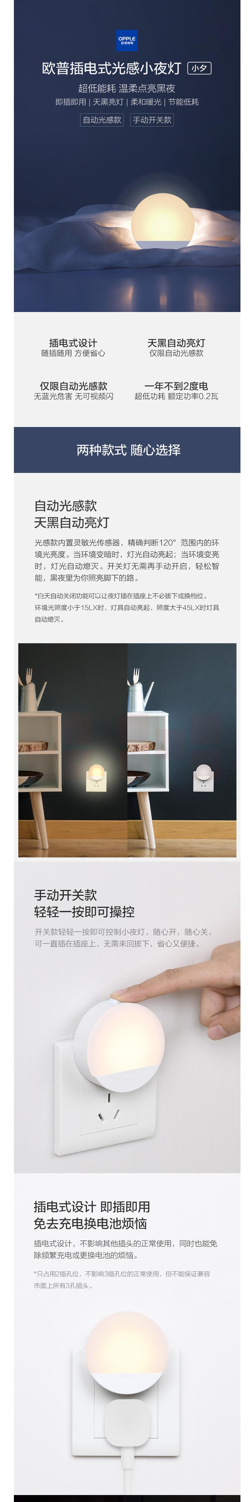 欧普照明(OPPLE) 智能感应小夜灯USB充电卧室床头节能led台灯