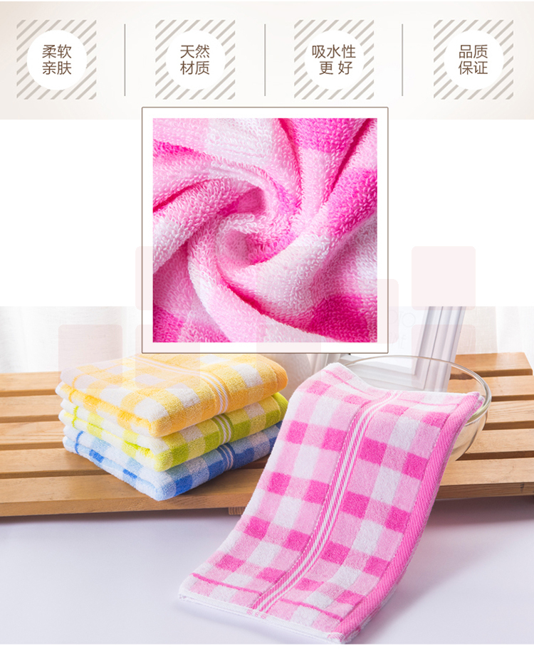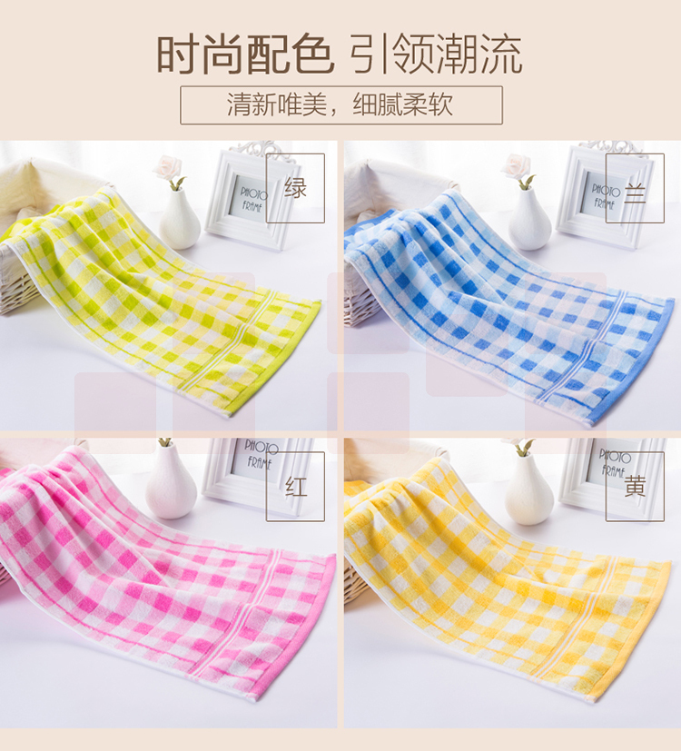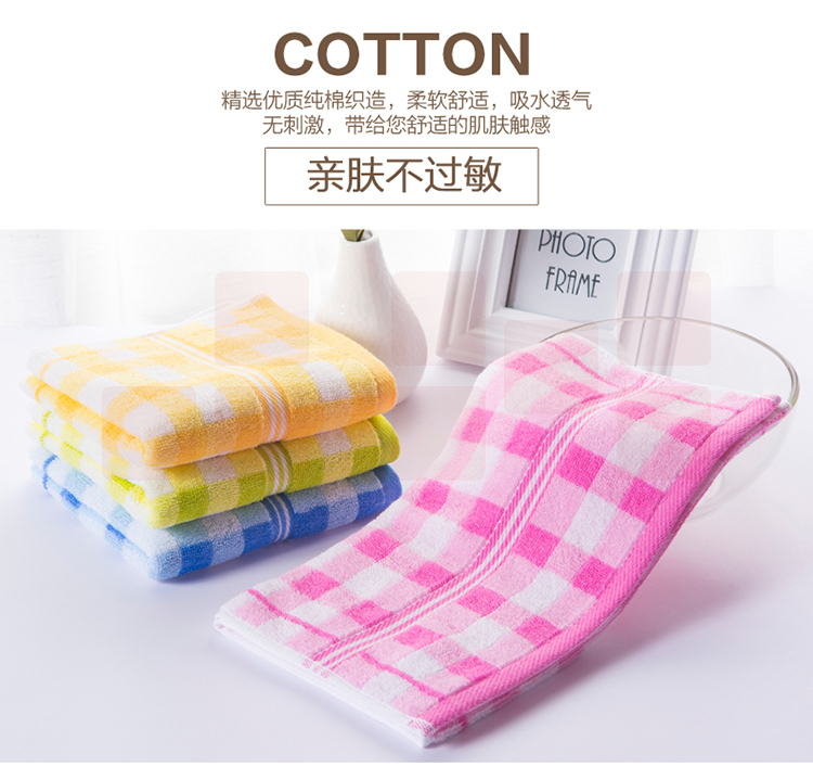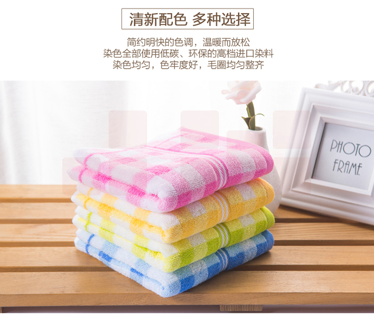 洁丽雅 0065 纯棉 毛巾 68*32cm 82克 格子 绿黄红蓝 颜色随机