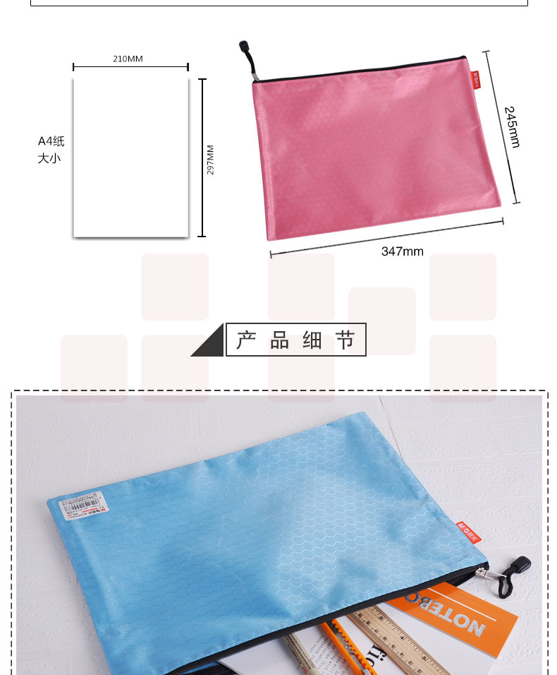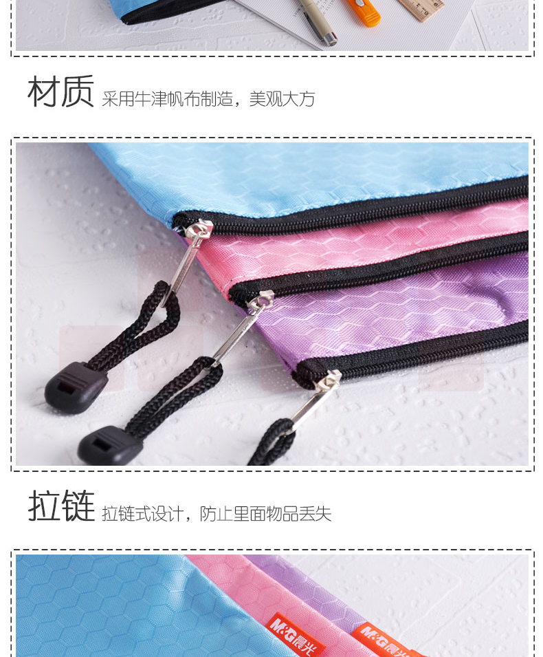 晨光(M&G)A4球纹拉链袋10个装 红蓝紫颜色随机ADM94854