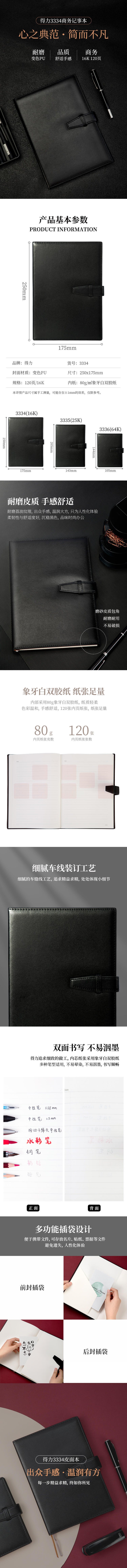 得力(deli)16K 120张大号扣带皮面本 商务会议记事本笔记本子日记本文具办公用品250mm*175mm 黑色3334