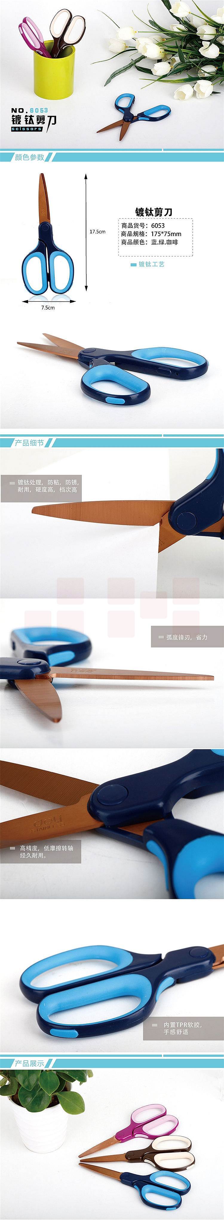 得力(deli)175mm镀钛不锈钢剪刀 软包胶手柄手工剪子 颜色随机6053