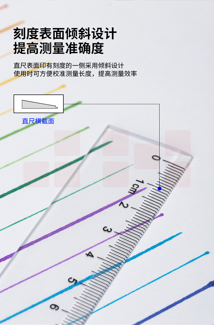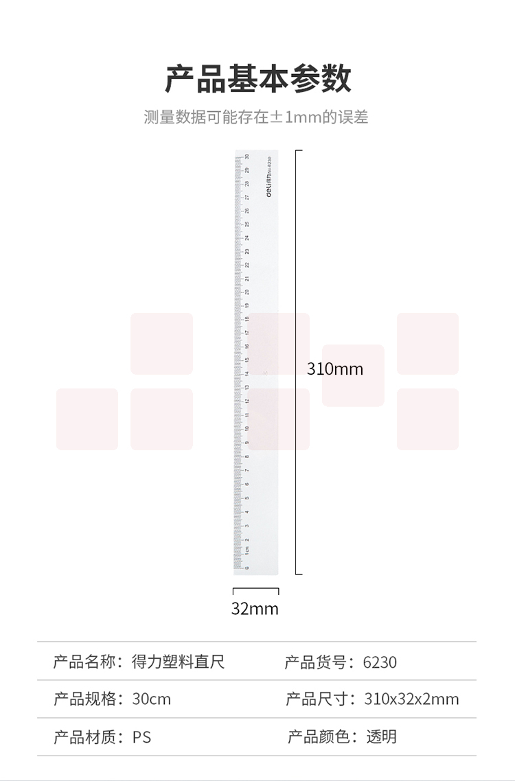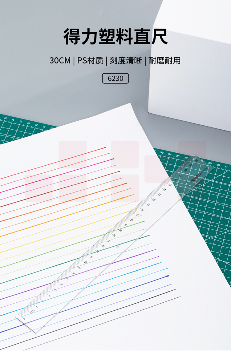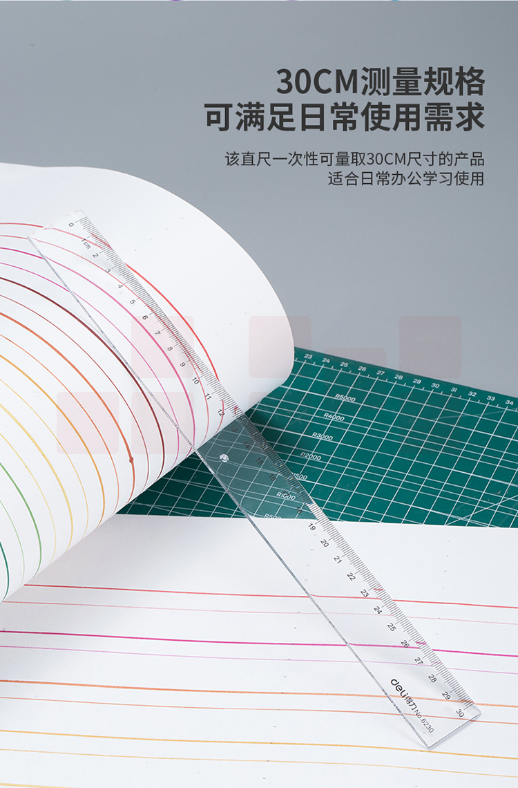 得力 6230办公通用直尺30cm 测量绘图尺子