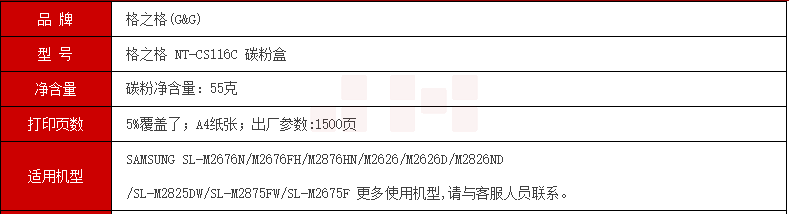 格之格(G&G)NT-CS116C 适用于 三星M2676 2676 2876HN M2626 2826ND