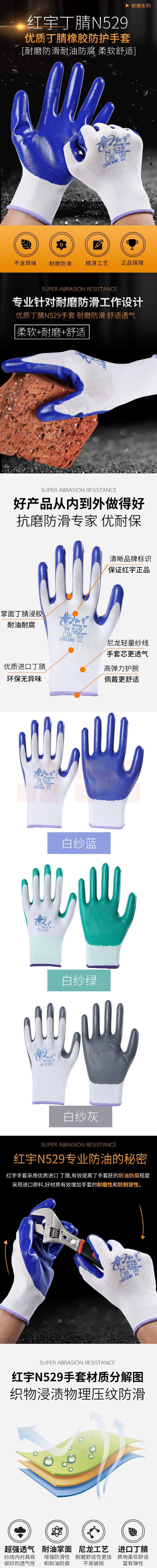 宏宇 N529劳保手套浸胶耐磨手套防滑耐磨挂胶手套