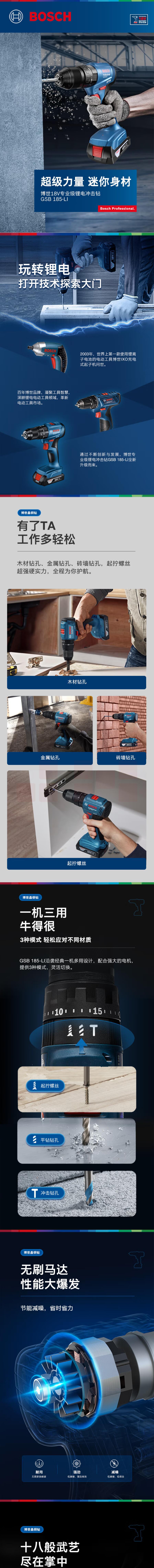 博世GSB 185-LI 18V 双电版无刷锂电冲击钻充电式手电钻电动螺丝刀 2.0Ah双电