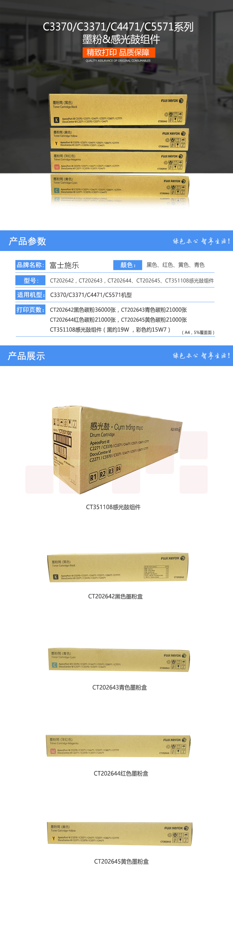 富士施乐 CT202645黄色墨粉盒6代 (适用C3370/C3371/C4471/C5571机型)
