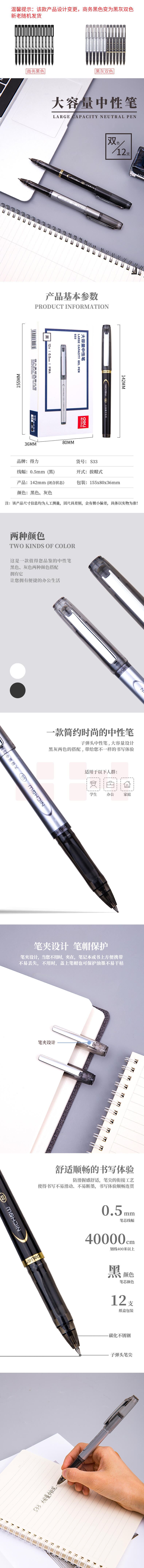 得力(deli) 大容量中性笔 0.5mm子弹头水笔签字笔 12支装 S33