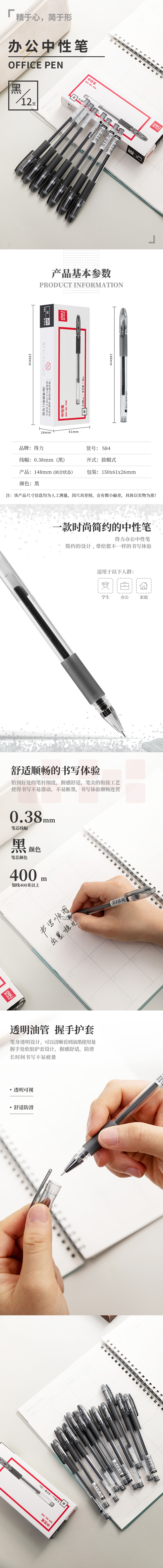 得力(deli)0.38mm中性笔 签字笔水笔12支 财务专用笔 全针管S84