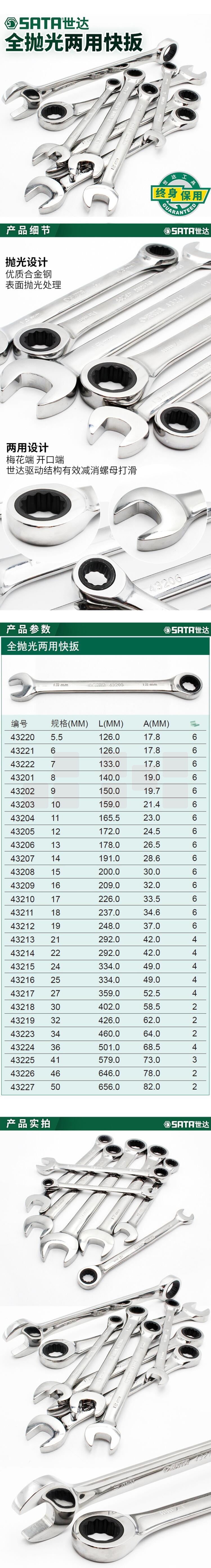 世达(SATA) 43205 全抛光两用快扳12MM