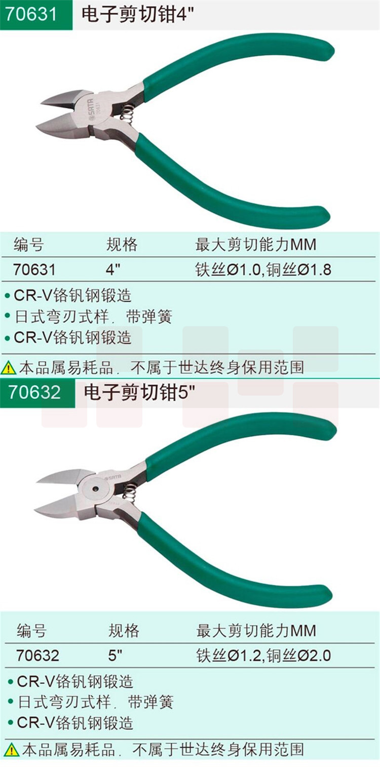 世达(SATA)70632电子剪切钳5" 偏口钳