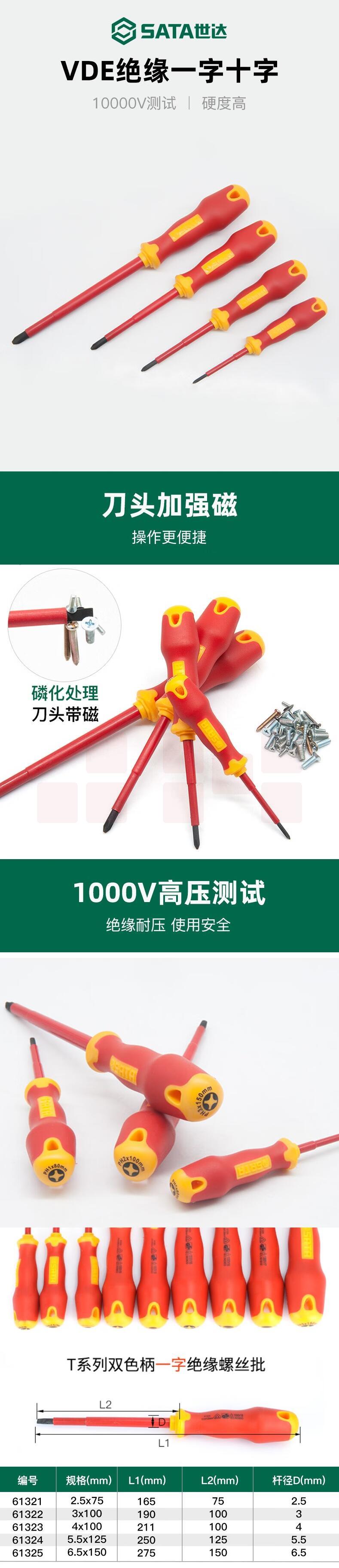 世达(SATA)61325T系列双色柄一字绝缘螺丝批6.5x150MM