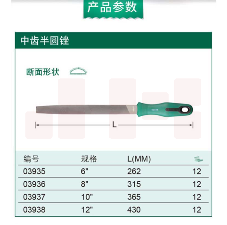 世达(SATA) 10英寸中齿半圆锉03937