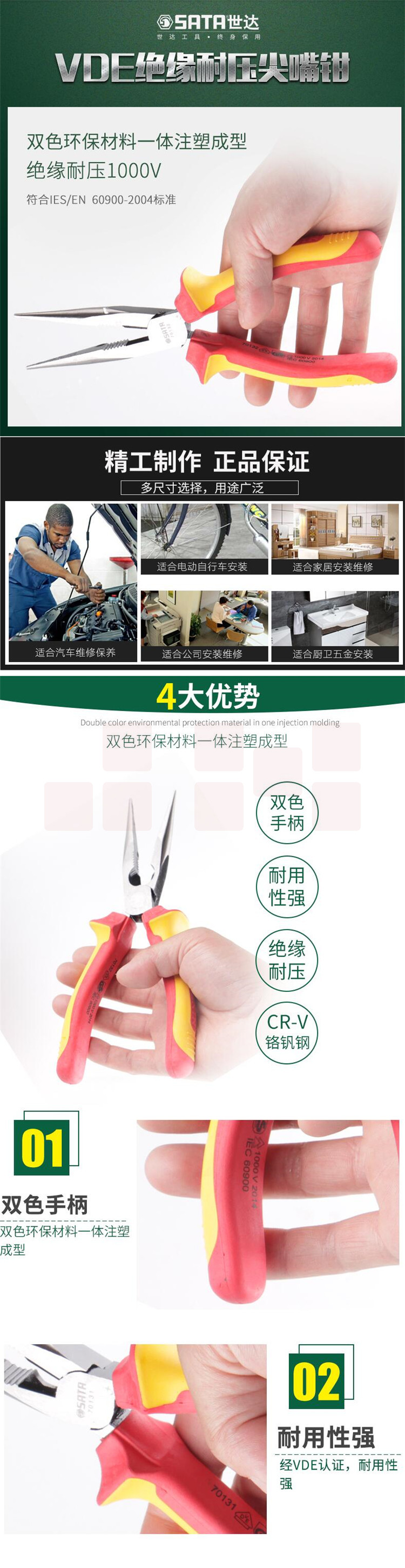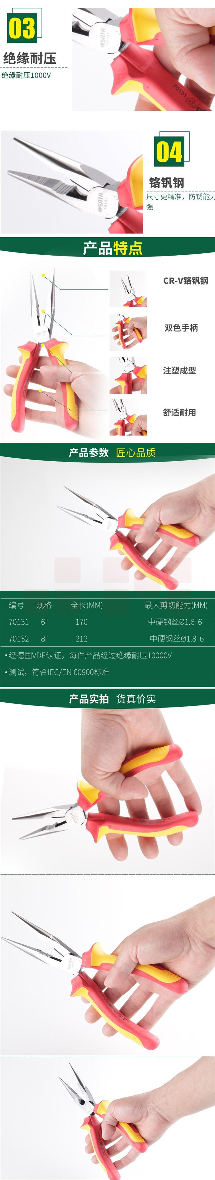 世达 6寸 VDE绝缘耐压尖嘴钳 70131