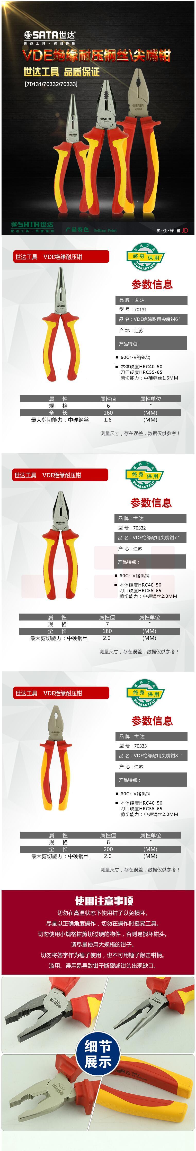 世达(SATA)70333VDE绝缘耐压钢丝钳8"