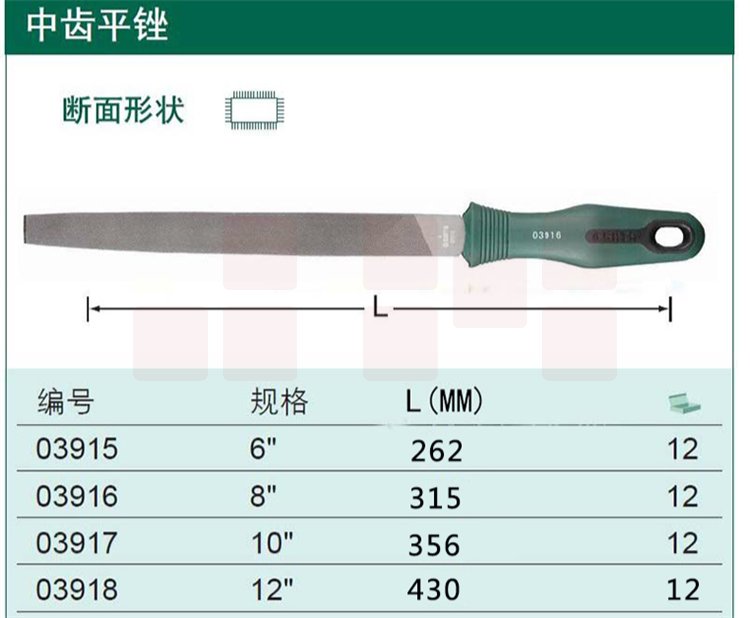 世达(SATA) 03916 中齿平锉6"03916 中齿平锉8"
