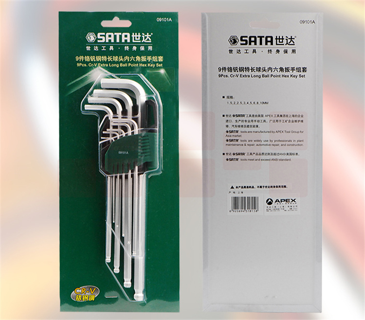 世达 9件套 特长球头内六角扳手 09101A
